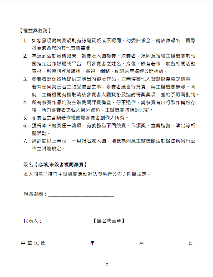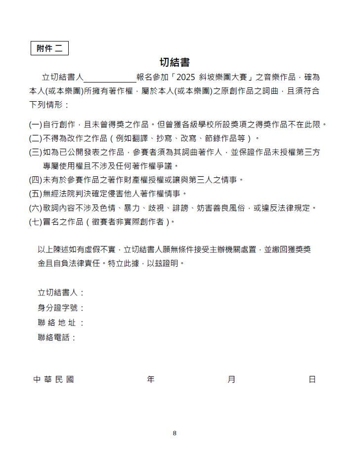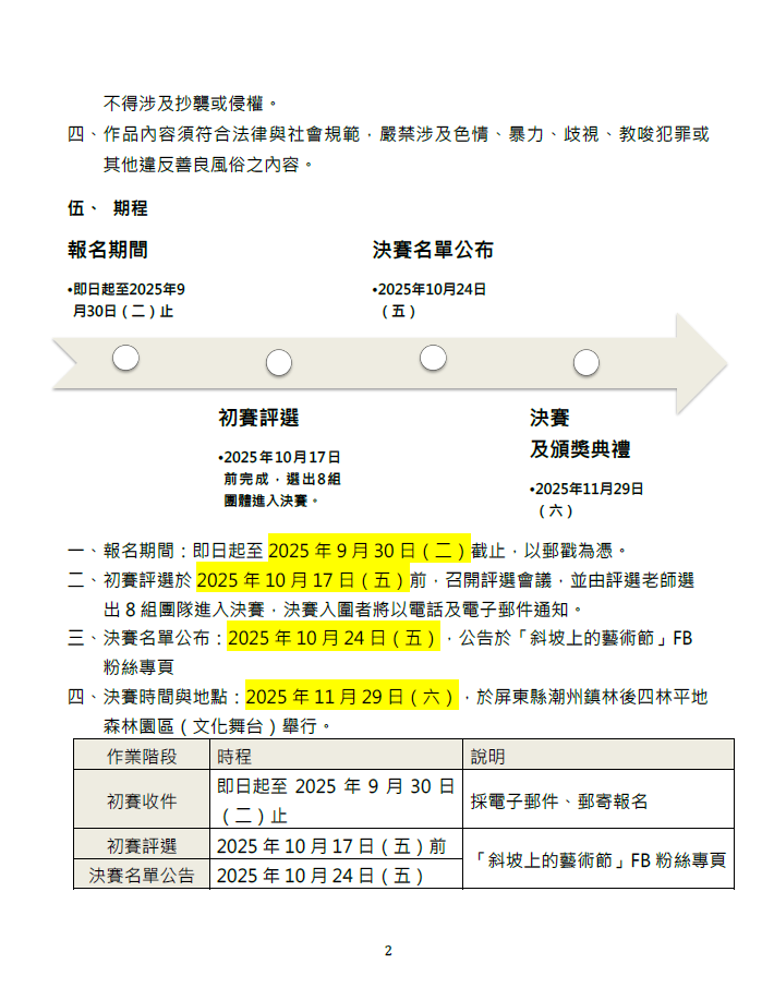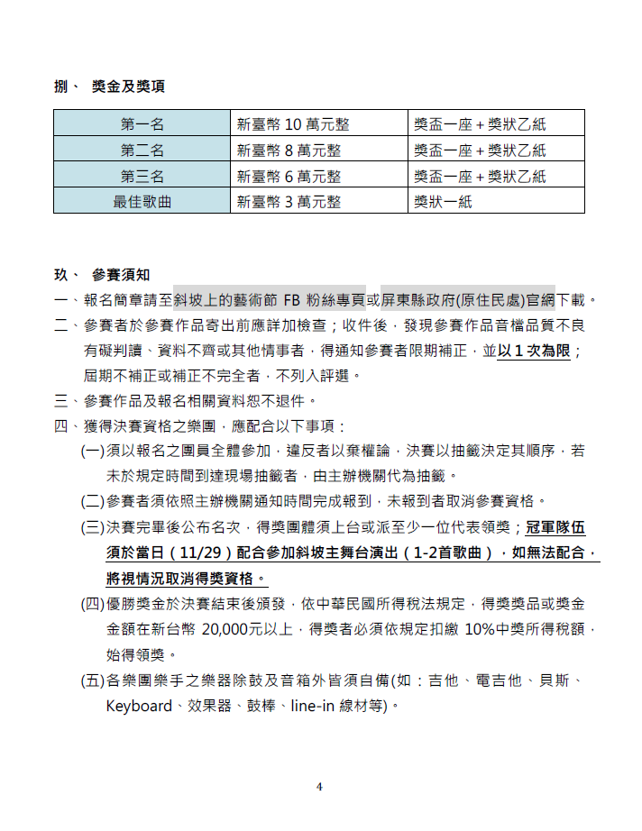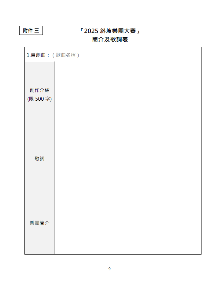 屏東縣政府辦理「2025斜坡樂團大賽簡章」一份,鼓勵所轄音樂人才踴躍報名